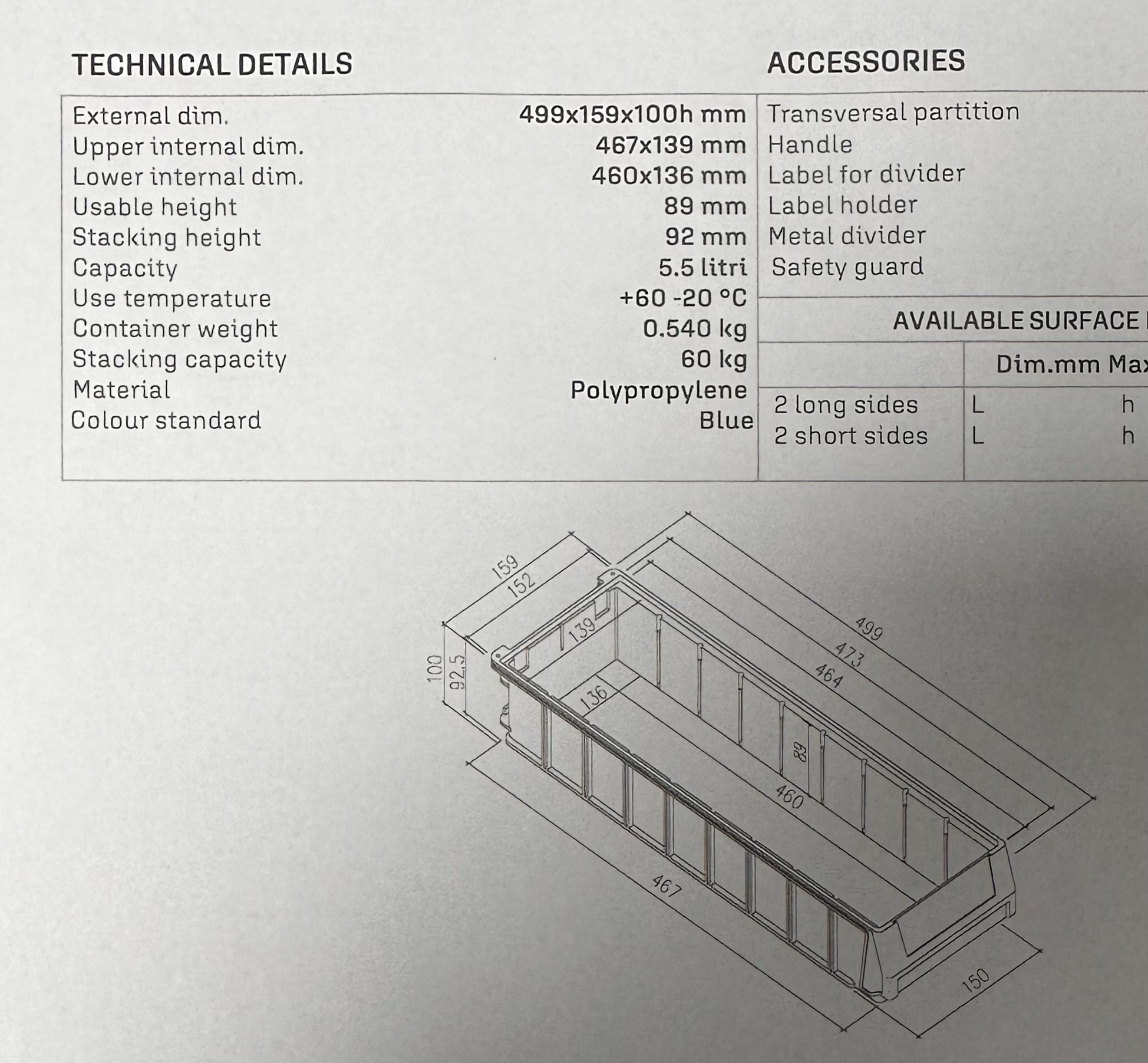 cassettina di plastica FAMI in polipropilene arancione, scatola da 24.pz (disponibili più scatole) misure esterne 499 x 159 x 100 dettagli tecnici in foto prezzo 24 euro a scatola.