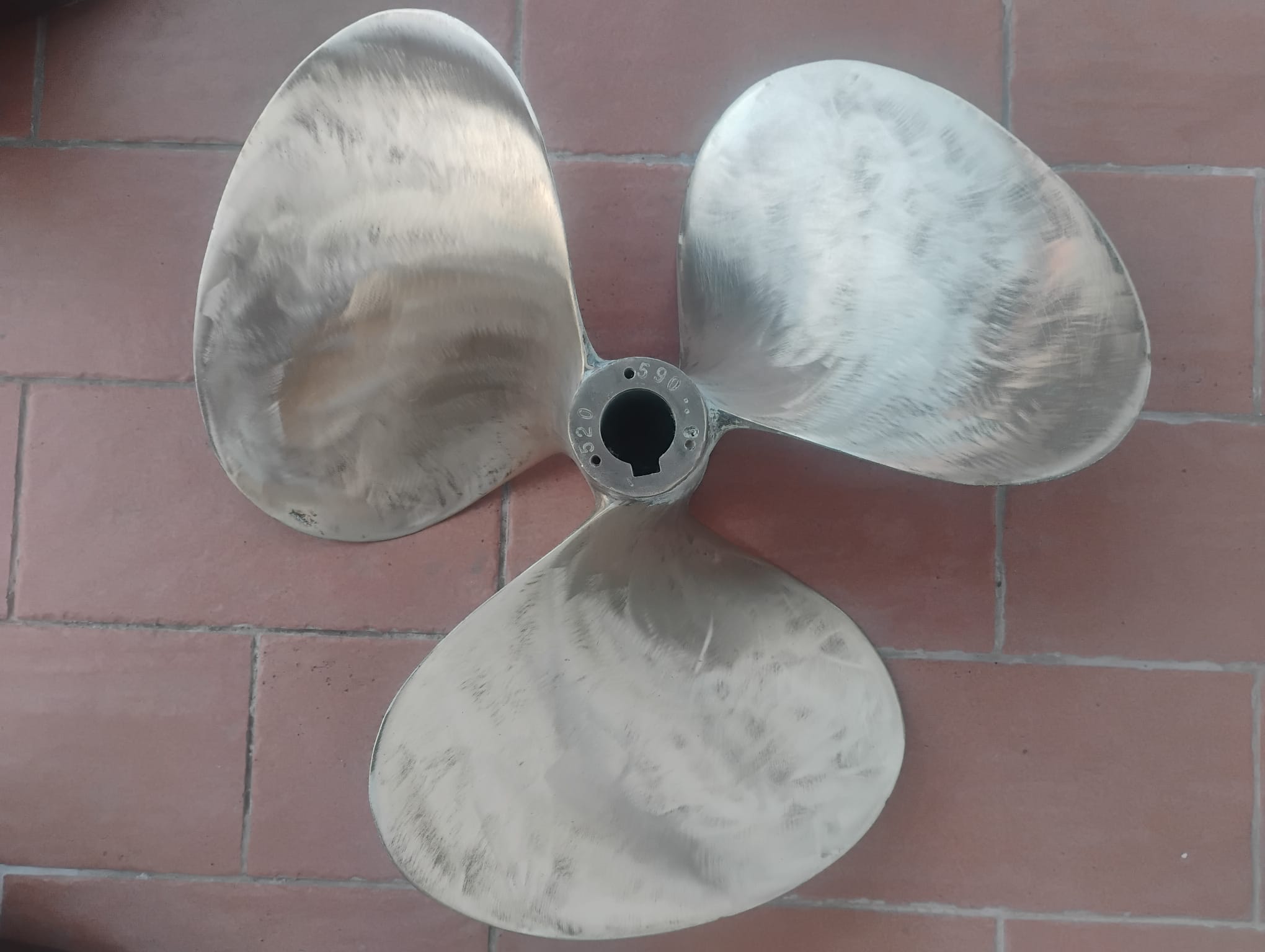 elica in bronzo 3 pale (sx), marca boat propulsion , del 2009, pari al nuovo. misure : diametro 520 mm x passo 590 mm , asse 50 mm. disponibile anche elica dx. adatta per motorizzazioni 320/330 hp, 2300/2400 rpm e per imbarcazioni/yacht tipo azimut/ferretti 12/14 mtr. possibilita' consegna gratuita a milano/monza/lecco. altre destinazioni da concordarsi.