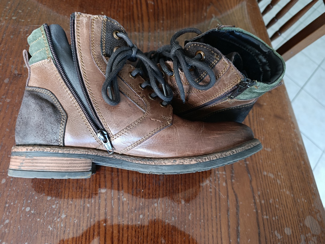 in pelle marrone con cerniera laterale. In ottime condizioni. Materiale esterno in pelle. Fodera interna in tessuto. Suola in gomma. Prezzo trattabile. Spedizione 9€