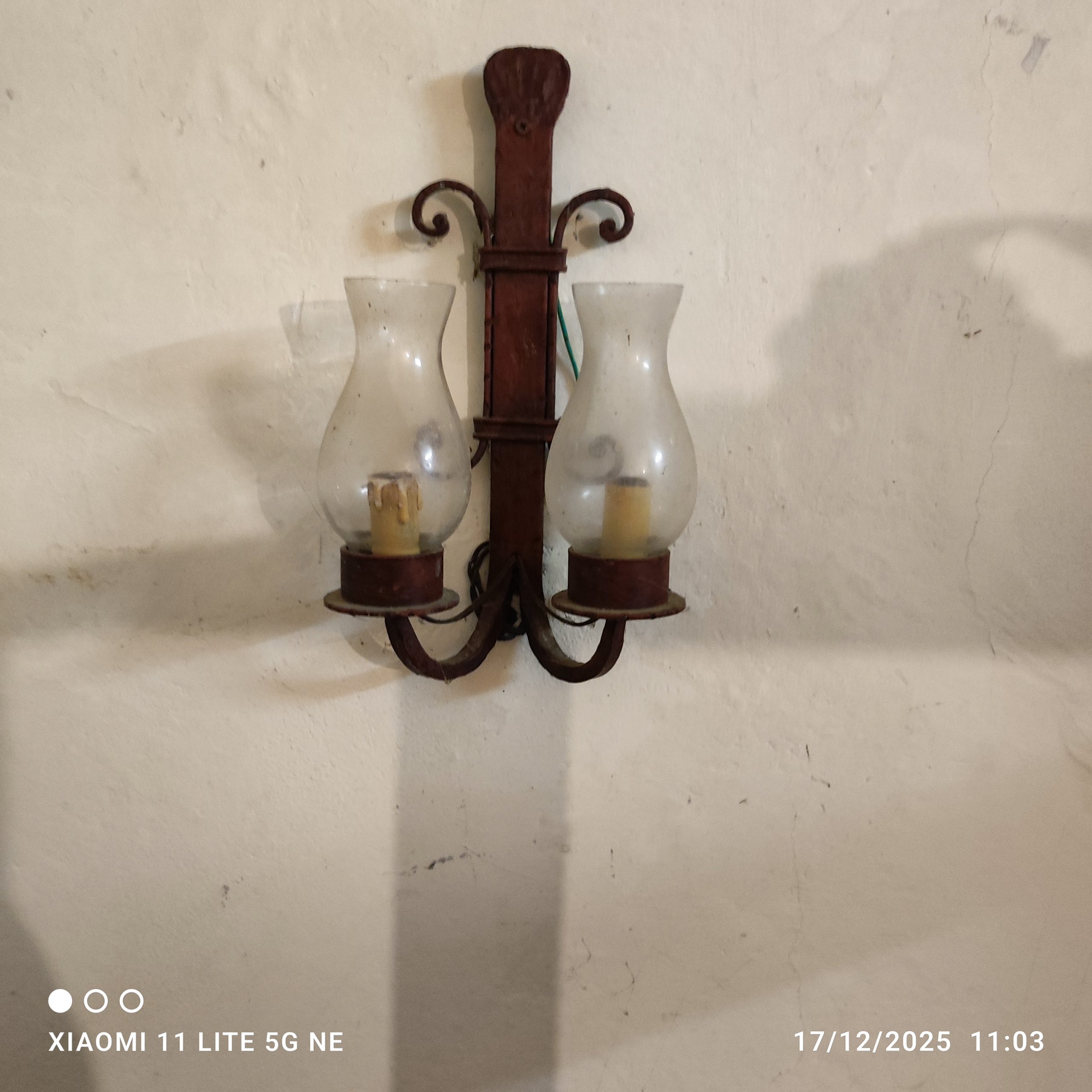 Splendide applique da parete realizzate artigianalmente in ferro battuto. Il design è caratterizzato da linee classiche con decorazioni a ricciolo, ideale per chi cerca un tocco autentico e retrò per la propria casa.