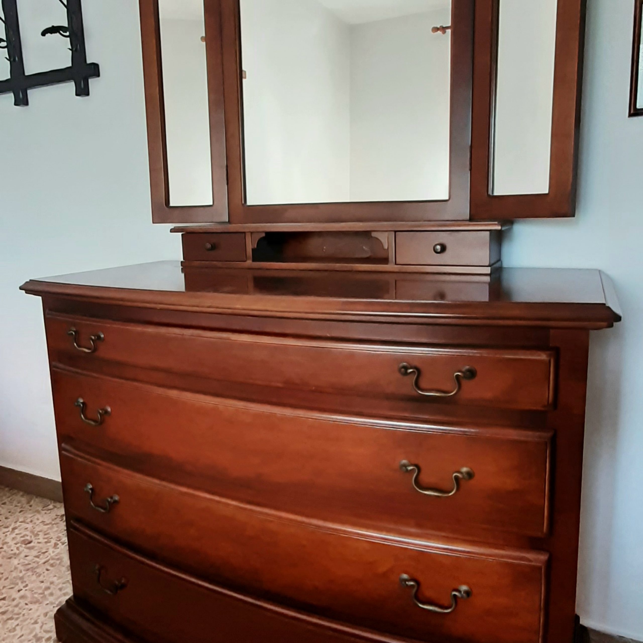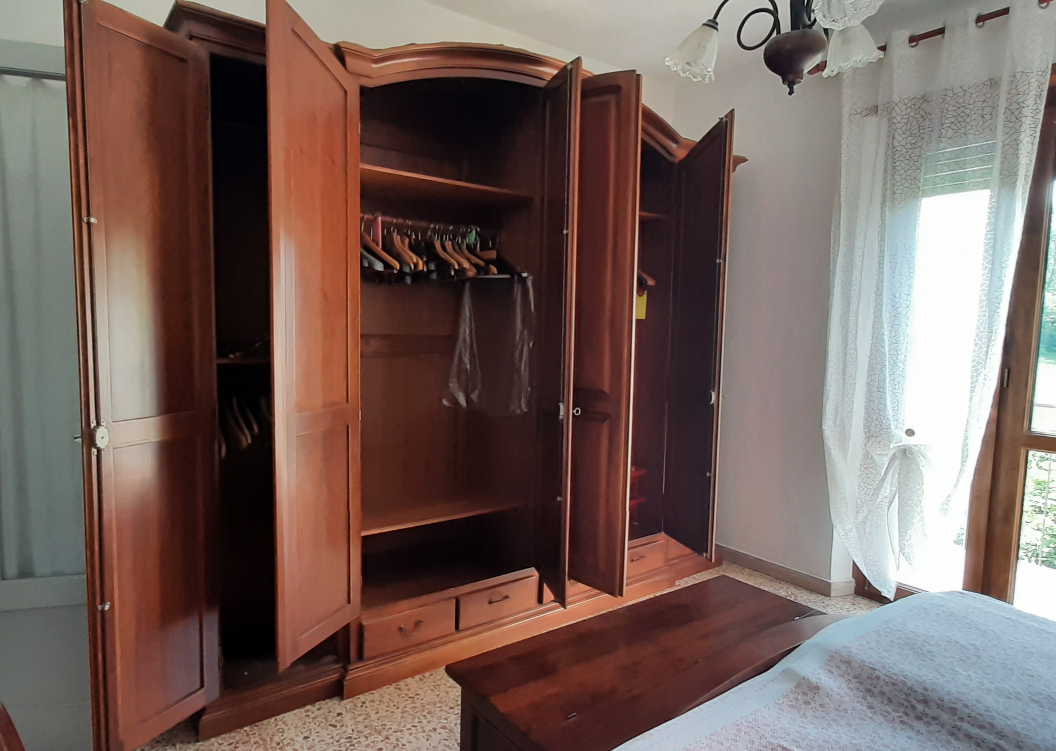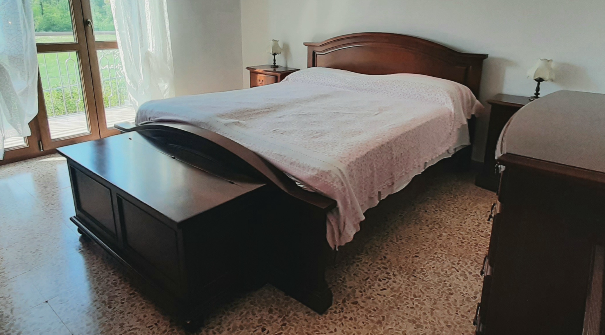 Vendo camera da letto composta da: letto matrimoniale con testiera (volendo anche con i materassi), due comodini, un como' con tre specchi, una cassapanca capiente, un armadio a 6 ante. Smontaggio e trasporto a carico dell'acquirente. Il materiale è ad Alpignano (TO)