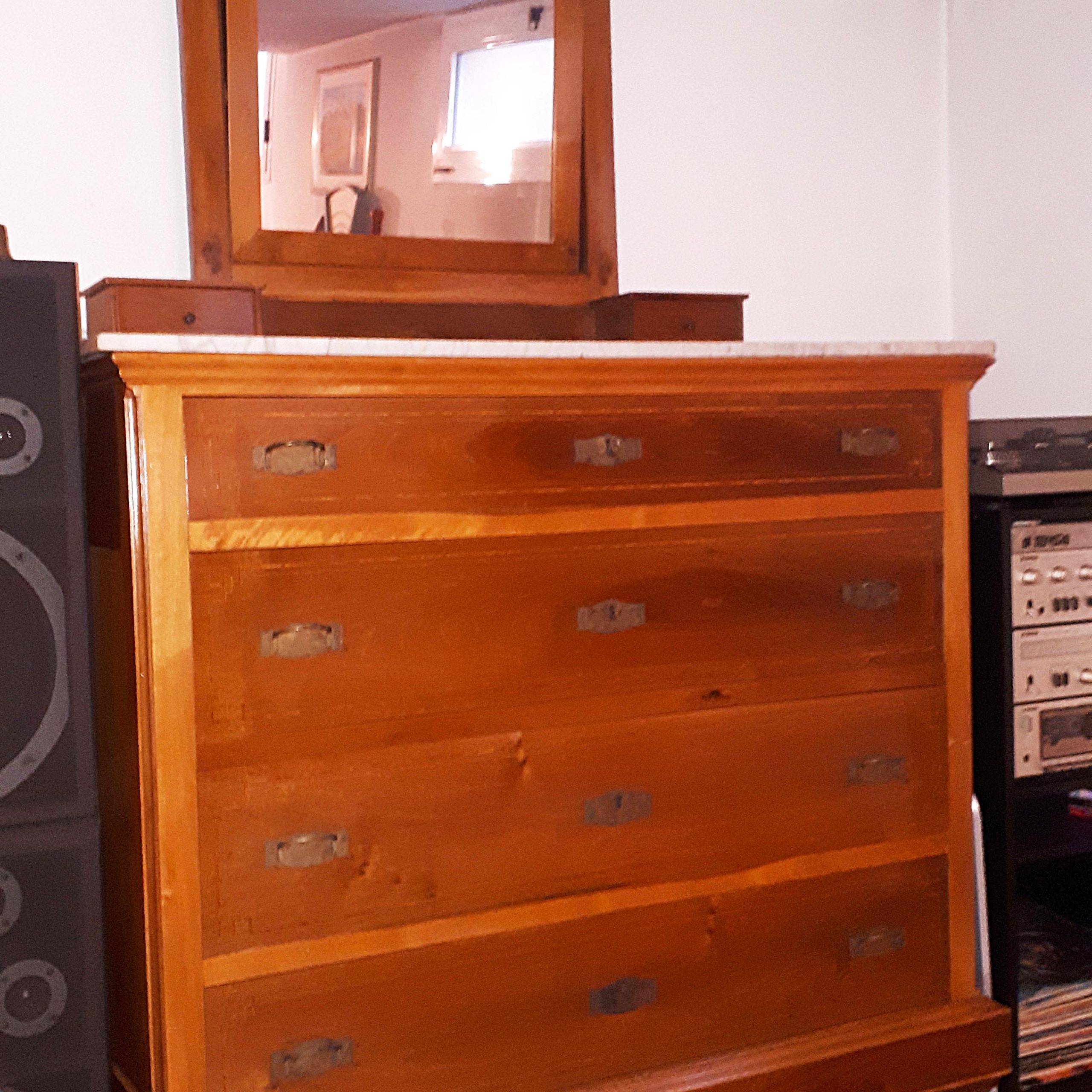 Vendo bellissimo mobile comò di fattura artigianale e da poco restaurato. Il piano è in vero marmo bianco di Carrara. Lo specchio orientabile ha due cassettini estraibili.