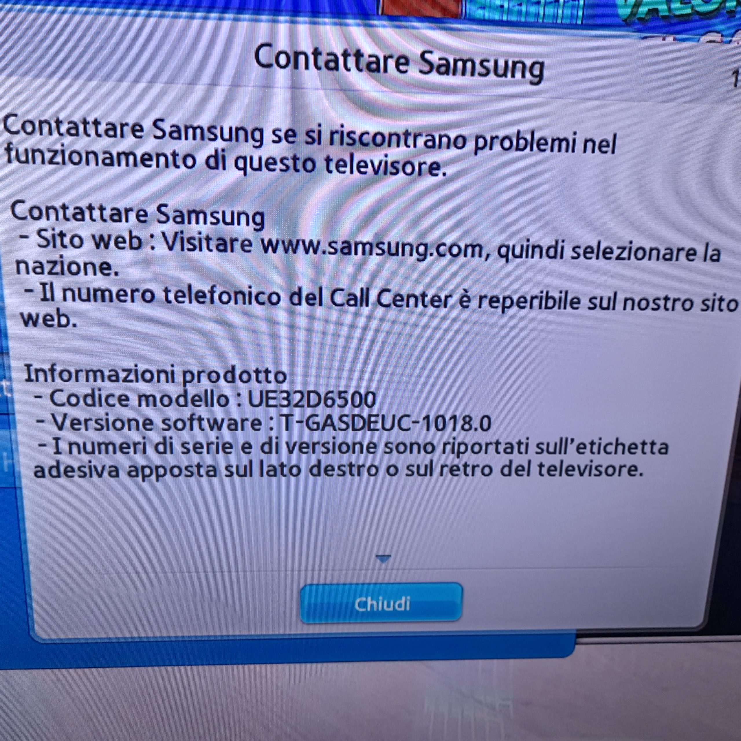 La Samsung UE32D6500 è una Smart TV LED Full HD da 32 pollici prodotta da Samsung. Questo modello è stato introdotto sul mercato intorno al 2011 e supporta la tecnologia 3D. Caratteristiche Principali Tecnologia Display: LED Risoluzione: Full HD (1920 x 1080 pixel) Dimensioni Schermo: 81,3 cm (32 pollici) Funzionalità Smart: È una Smart TV dotata di connettività Wi-Fi ed Ethernet LAN, che permette l'accesso a contenuti web e browser. Design: Presenta un design sottile (One Design) con una cornice ridotta. Tuner: Include sintonizzatori DVB-T, DVB-C e DVB-S2 integrati per la ricezione di canali