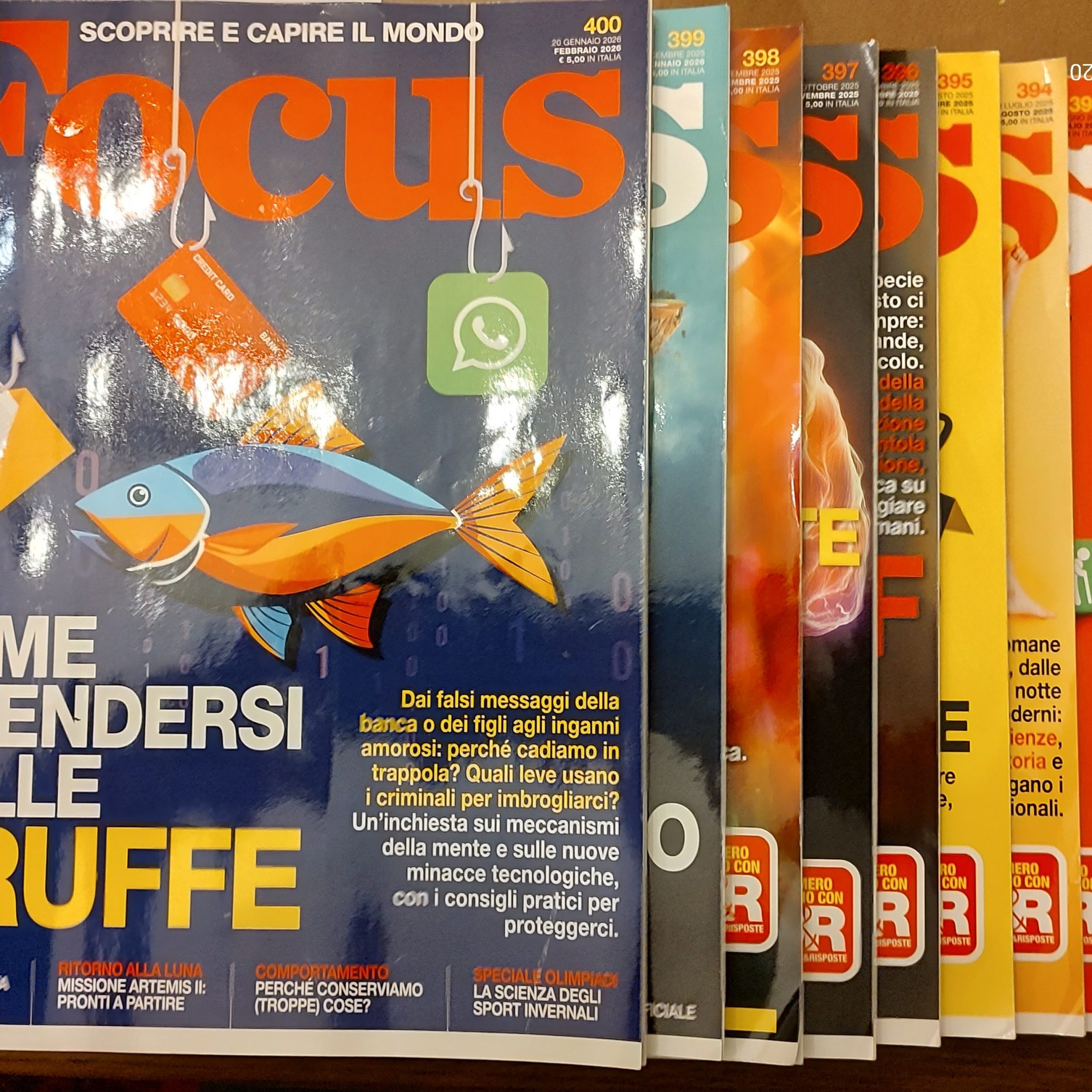 Vendo sette annate quasi complete della rivista scientifica Focus: dal n. 304 (febbraio 2018) al n. 400 (febbraio 2026). Sono 93 numeri, in buone condizioni e ben conservati. Mancano quattro numeri: 323, 328, 329 e 330.