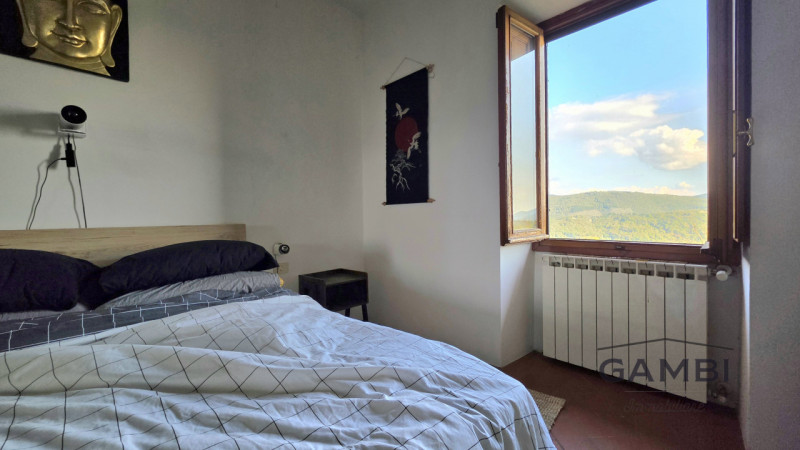 Croci di Calenzano - Casaglia In zona estremamente tranquilla e immersa nel verde ma comunque vicina ai principali servizi si propone in esclusiva grazioso appartamento indipendente sito al piano terra rialzato. L&rsquo,immobile ha accesso su un&rsquo,ampia zona giorno con camino e accesso alla terrazza con vista panoramica oltre cucinotto separato da una porta a vetri scorrevole. Tramite un grande disimpegno si accede alla zona notte dove troviamo due camere da letto di cui una doppia e una matrimoniale oltre servizio igienico finestrato con vasca e ripostiglio con accesso ad una soffitta utilizzabile come rimessaggio. L&rsquo,immobile si presenta in ottimo stato conservativo con rifiniture caratteristiche della zona pavimento in cotto infissi in legno con vetro-camera e inferriate e impianto di allarme. Completa la proprietà, un piazzale sito nella parte frontale utilizzabile come parcheggio e dove è, presente un casottino dove poter posizionare la legna per il camino. No spese condominiali. Utenze autonome con caldaia alimentata a metano. Adatta anche come seconda casa. classe energetica: in fase di definizione IPE 175.00 kWh/m2anno prestazione estate scarso prestazione inverno scarso { 161025 *69219 *07-3217025 *07 *0-1 }